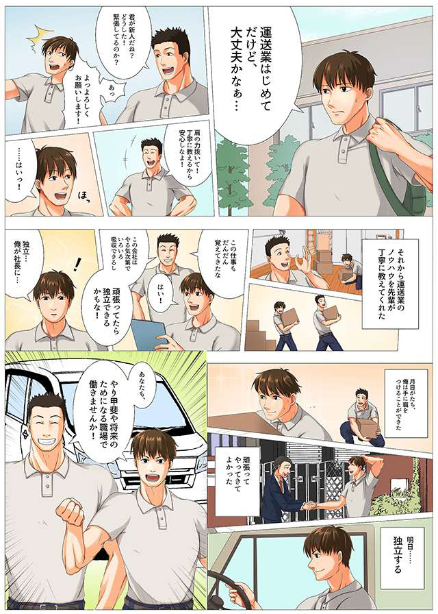 ドライバーとしてだけでなく、経営者目線で動いてくれる方、将来は独立して弊社のグループ会社となってくださる方も大歓迎です。配送のことはもちろん、経営のノウハウ等もしっかりと伝授いたしますので、湘南レインボーサービスで夢を叶えてみませんか。